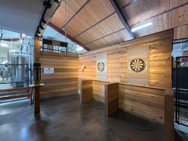 This is a favored spot for many patrons as it has overflow seating for the pub, with 2 dart boards and Ring the Bull—a game that originated in a pub in Nottingham England called “Ye olde trip to Jerusalem.” It can be found now at a few places around town but back in 2011 when our doors opened, we were the only one around. It’s addictive and thrilling if you have never rung the bull before. It’s a Civil life rite of passage.